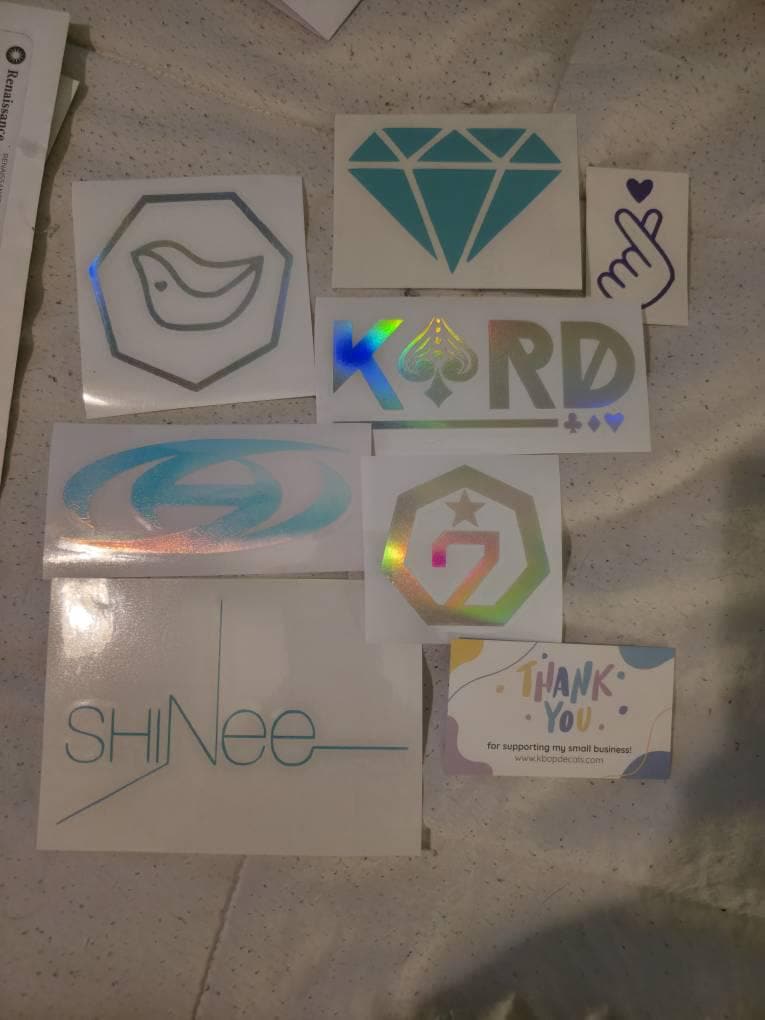 Seller included a photo print of Jiwoo and smaller stickers. Super cute! High quality KARD car decal